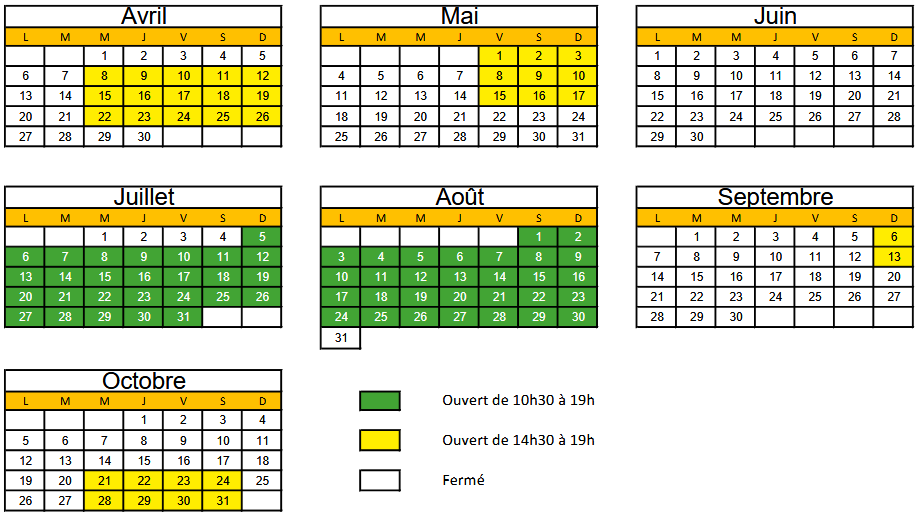 Horaires et jours d'ouverture